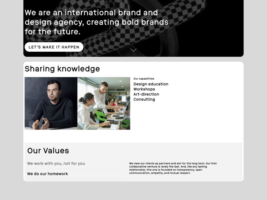 This extends beyond copywriting. We had to reconfigure the entire “about” page, both in structure and design. We wanted the new version to really represent who we are as a company and attract like-minded collaborators. That's why we used prototyping to test out various approaches to the mechanics and figure out the perfect form.